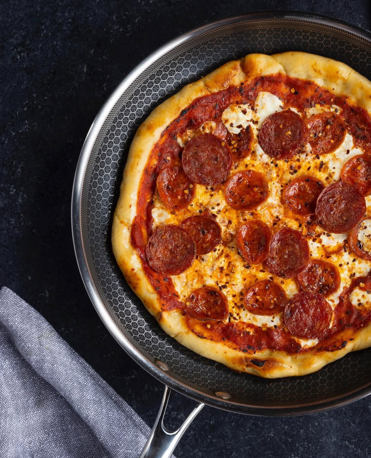 Our Hybrid Cookware Delivers the searing power of stainless steel, the strength of cast iron, and the convenience of nonstick — all in one pan.
